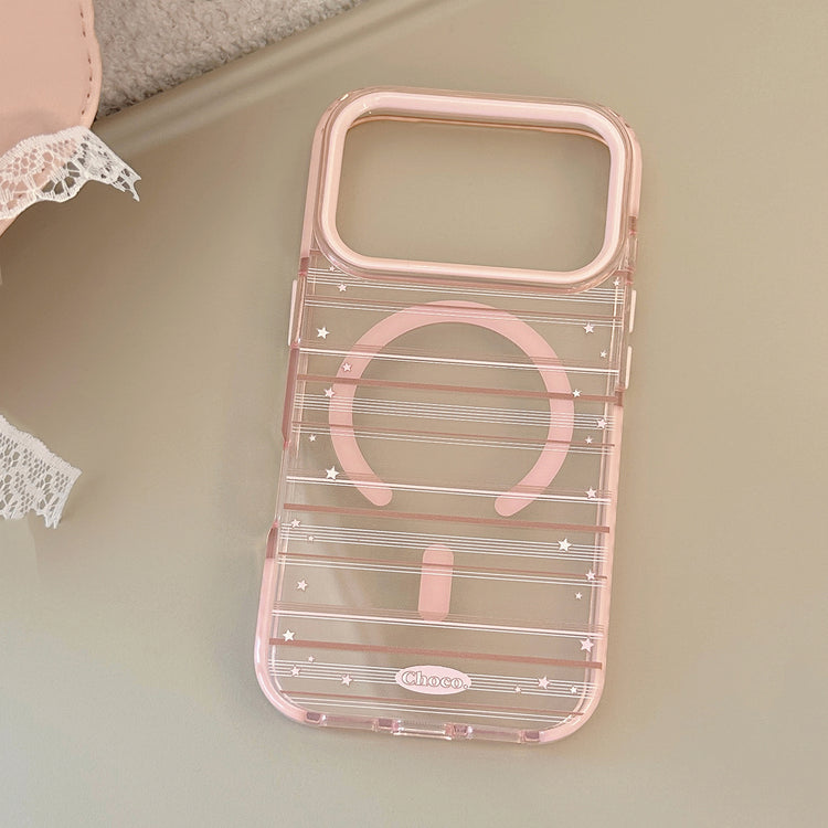 Keep your phone secure and stylish with this magnetic iPhone holder set. Featuring a pink-brown striped design, the case is both functional and fashionable, offering drop-resistant protection while standing out with a painted finish.