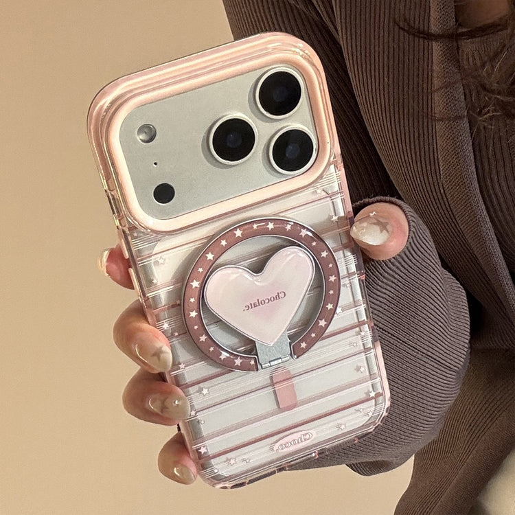 Design: Pink-brown stripes, heart-shaped magnetic stand