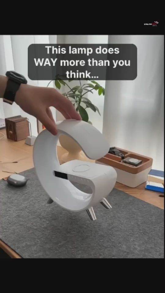 Upgrade your space with the G-Shaped LED Smart Lamp with Clock – Bluetooth Speaker & Wireless Charger RGB Light, a modern multifunctional device designed to combine lighting, sound, and convenience in one sleek design. More than just a lamp, it features a Bluetooth speaker, wireless charger, alarm clock, and customizable RGB lighting, making it perfect for bedrooms, desks, or living spaces.