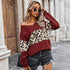 Leopard Print Sweatshirt Fashion Casual V-neck Long-sleeved Pullover Top Women's Commuting Clothing