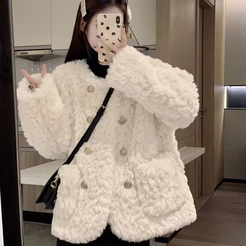 Temperament Leisure Small Loose Quilted Double Breasted Top