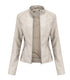 Women's Zip-up Leather Jackets Fashion Solid Color Pockets Stand Collar Top Outwear Clothing